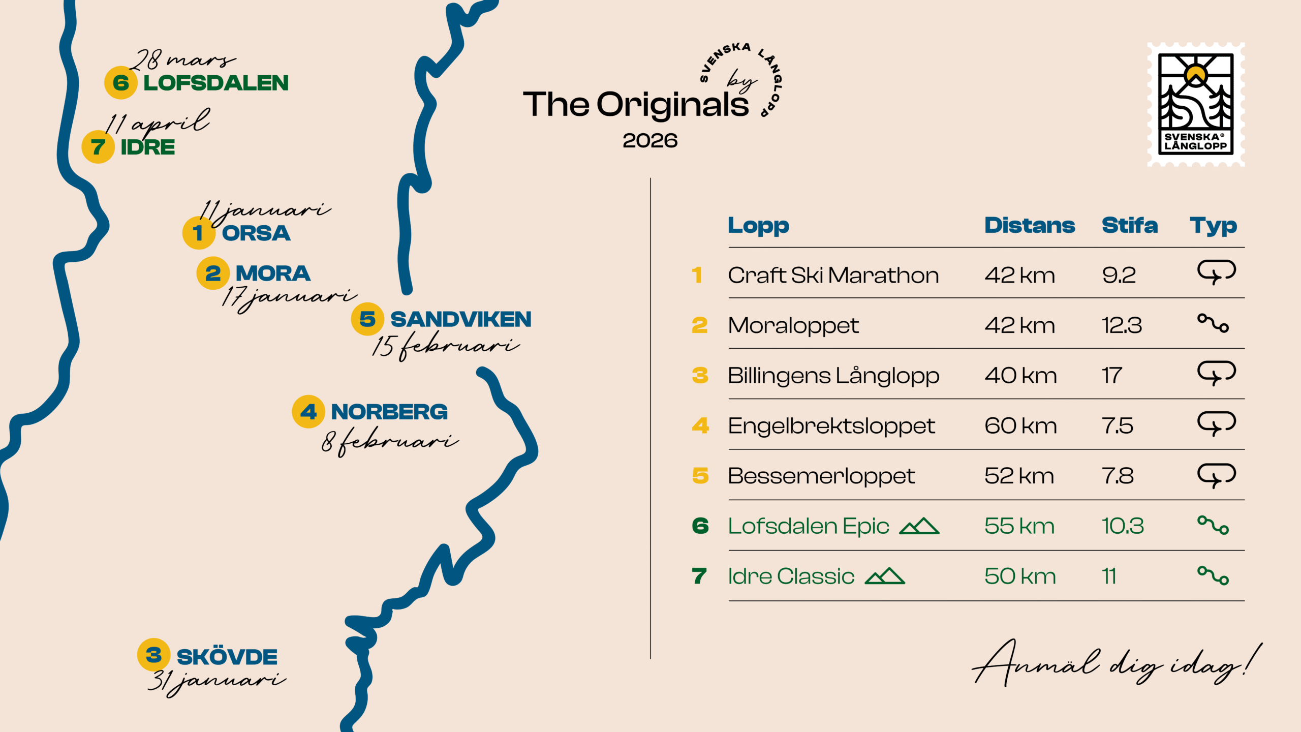 Välkommen till vinterns klassiska långlopp på skidor. The Originals tar dig till sju olika destinationer med unika upplevelser och minnen för livet.